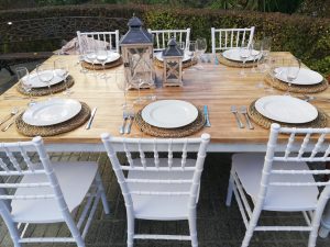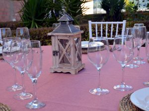 Mantel rustico color Fucsia para mesa redonda de 1.80